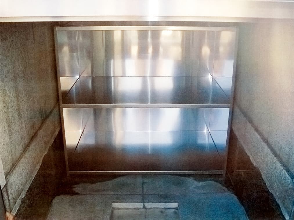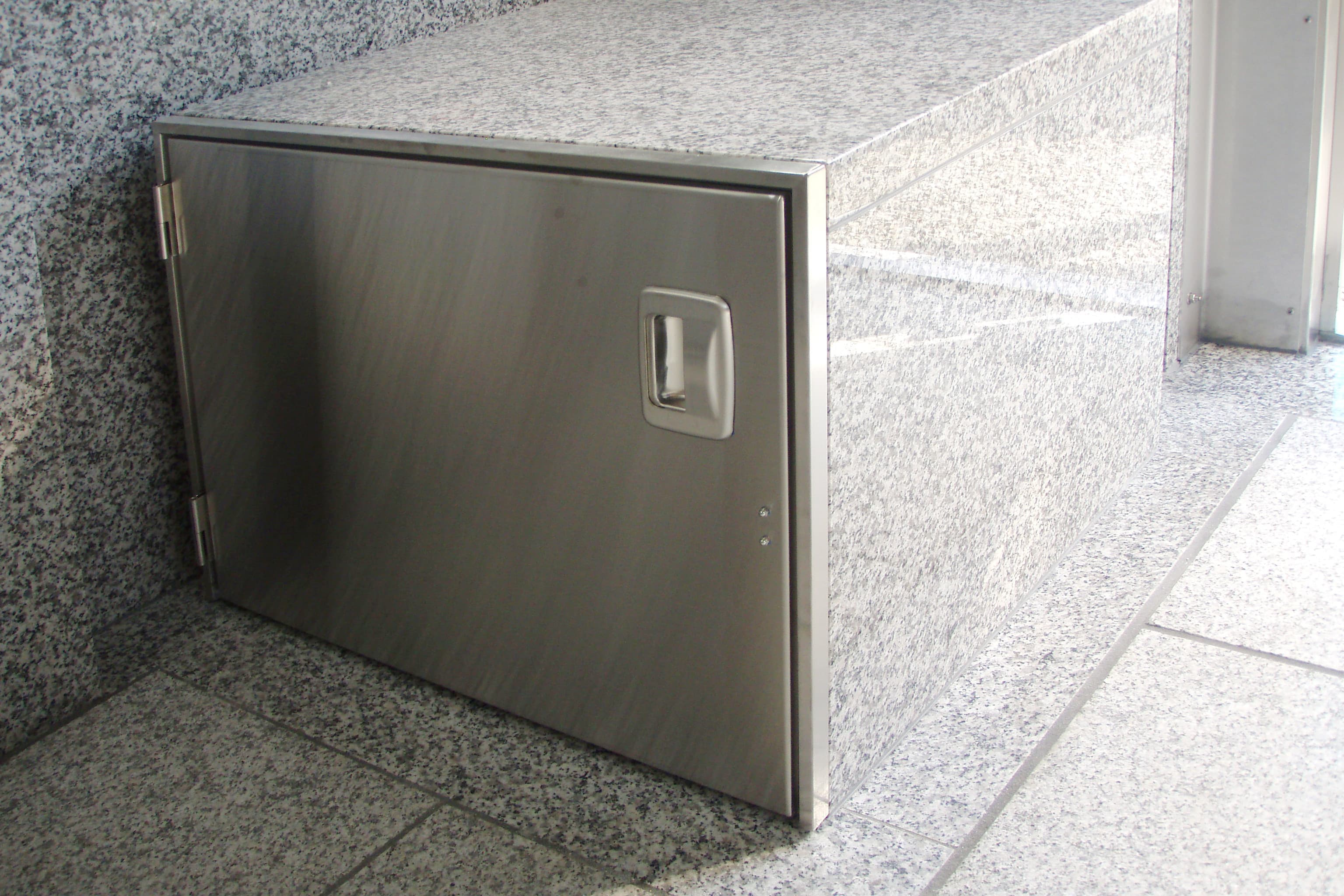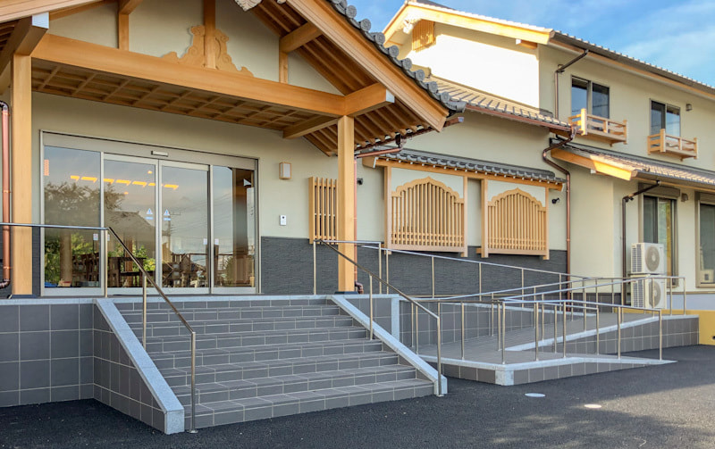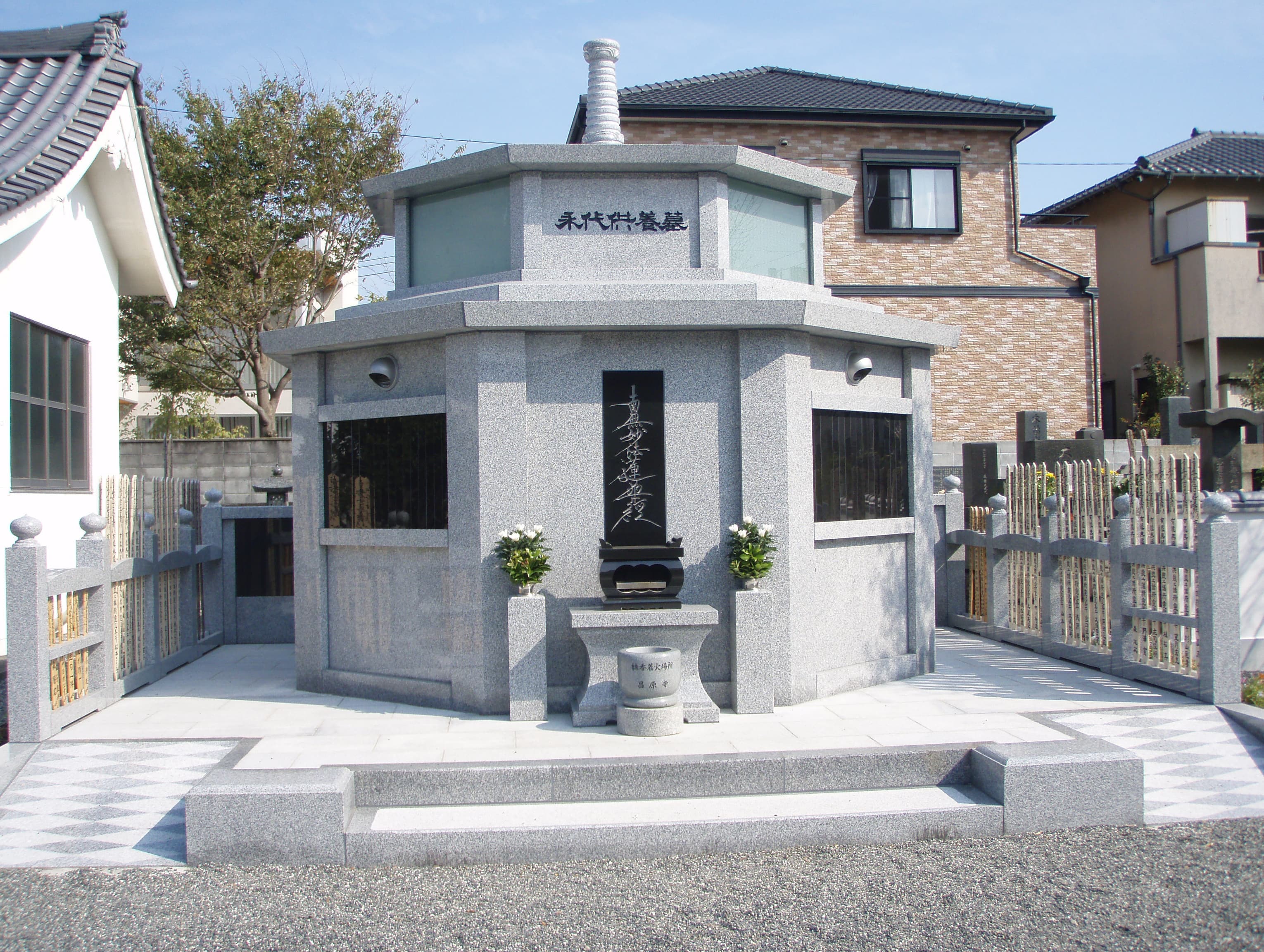 石とステンレスのコラボレーションが、寺院の風格をさらに高めます。