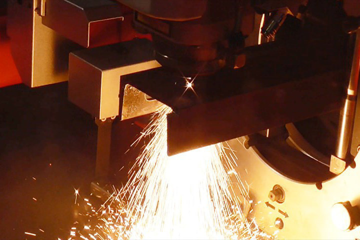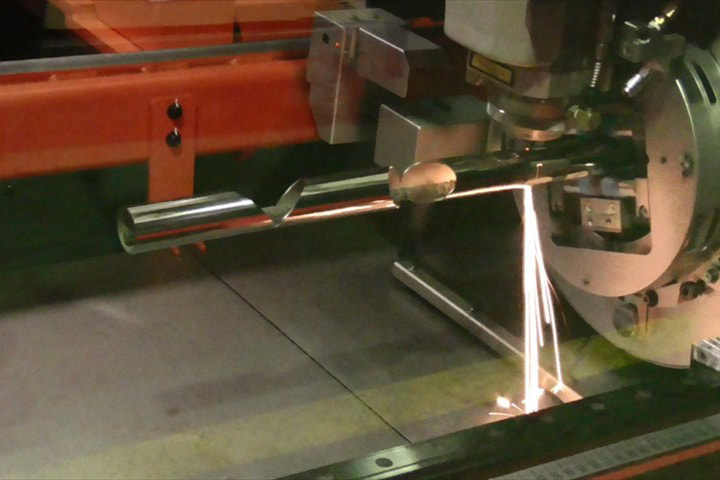 amada製フライングオプティクスレーザーマシン「MII 3015NT」の導入により、レーザー加工の範囲が大幅に広がりました。以前の丸パイプだけでなく、アングル・チャンネル・角パイプなどの型材の切断やタブやノッチなどのコーナー加工、穴あけも、図面からCADデータ制作&材料をセットするだけで短時間で自在にできるようになりました。また、3DCADの時点で材料歩留まりや干渉にも配慮できるので品質向上も期待できます。