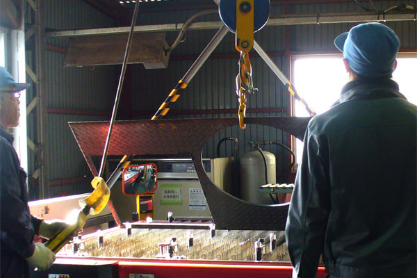 ステンレスやスチール・アルミをメインに、平板だけでなくチャンネル/アングル/各パイプなどの型材3次元加工まで対応可能です。